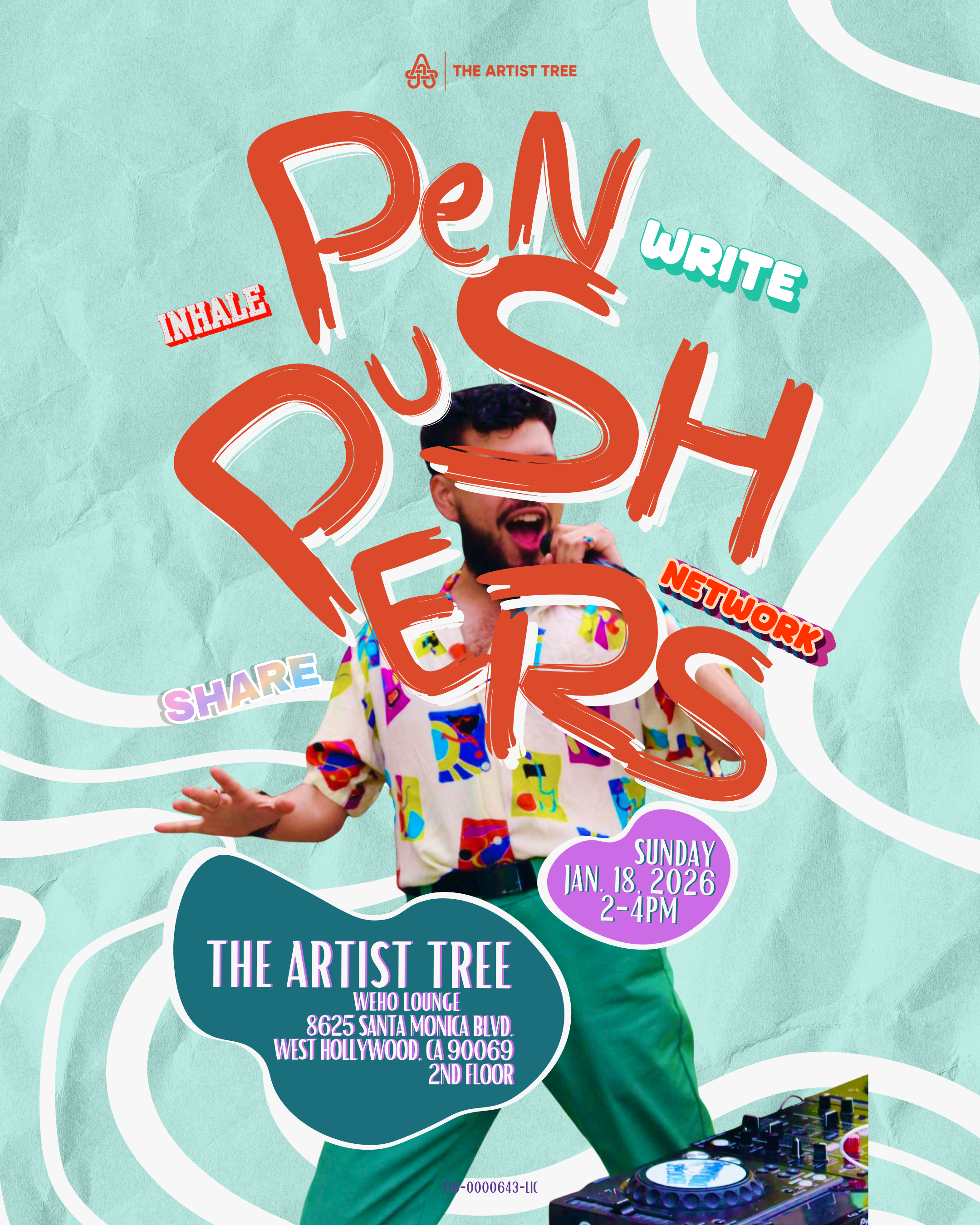 Back to All Events PEN PUSHERS Sunday, January 18, 2026 2:00 PM 4:00 PM The Artist Tree 8625 Santa Monica Boulevard West Hollywood, CA, 90069 United States (map) Google Calendar ICS FREE RSVP